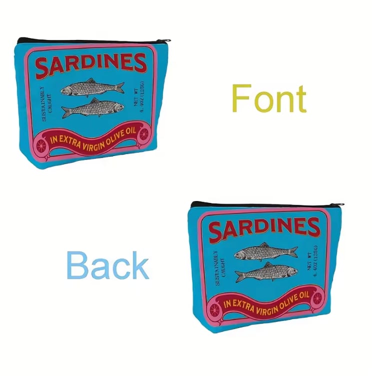 愛らしいサーディンデザインのメイクポーチです!ユニークで遊び心溢れるアイテム。化粧品や小物を整理するのに最適なサイズ感です。